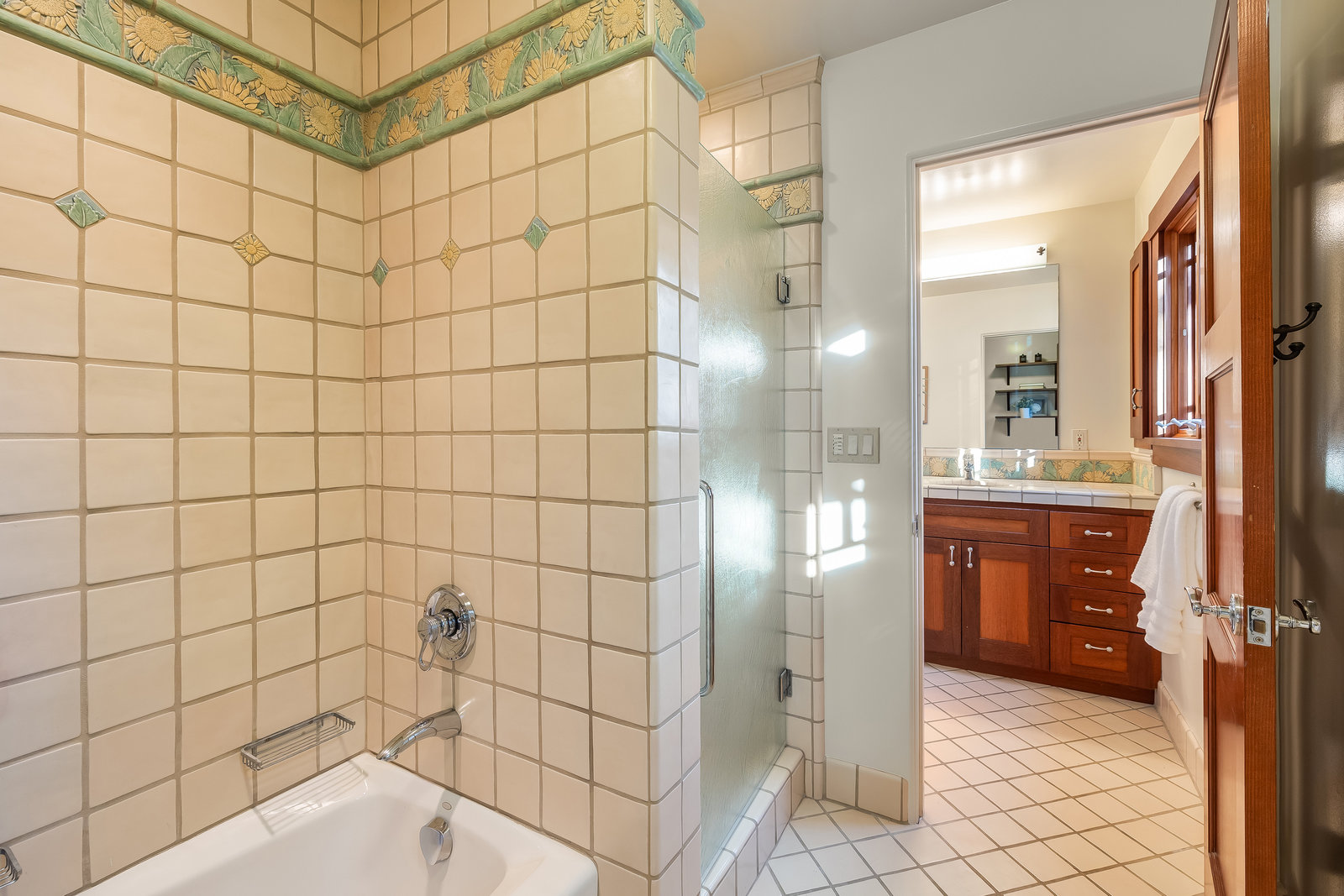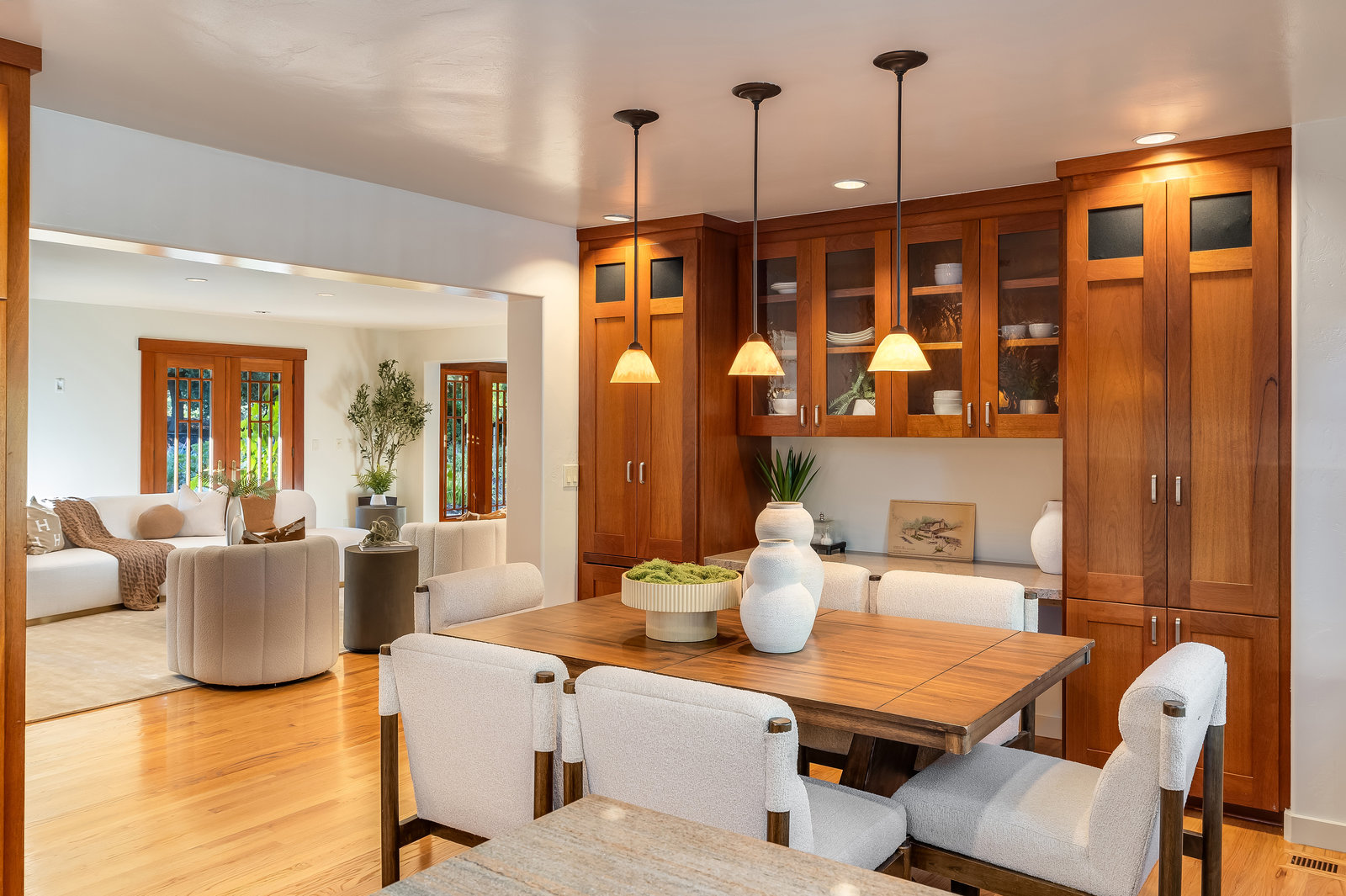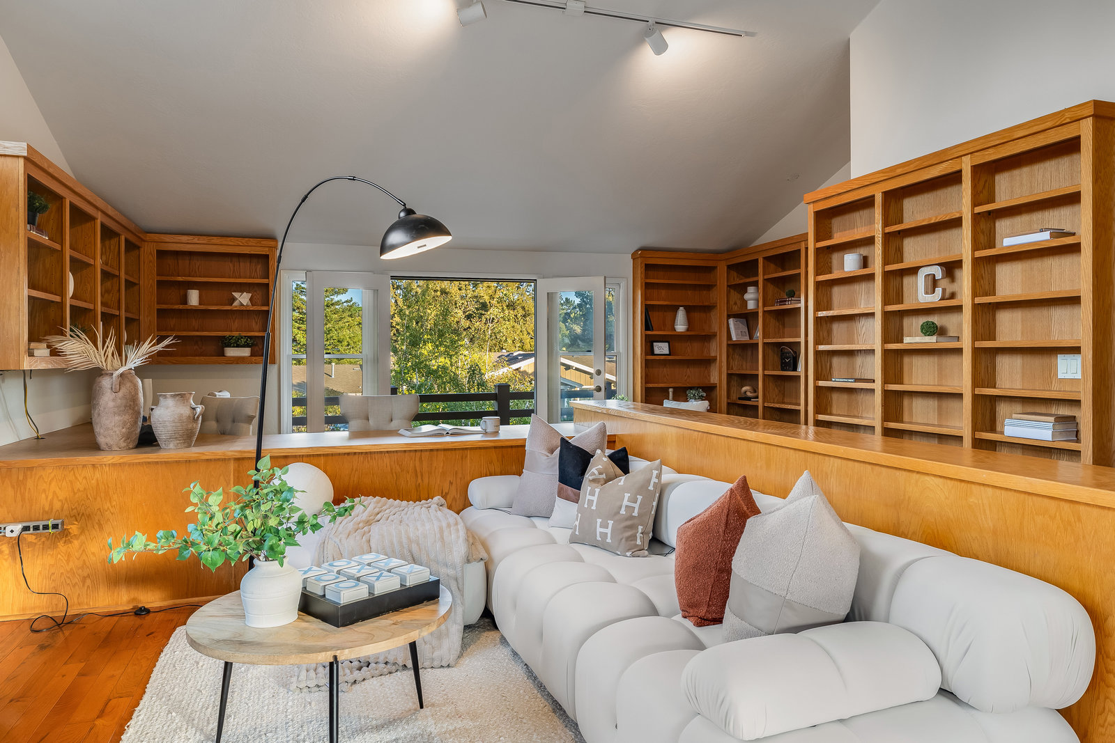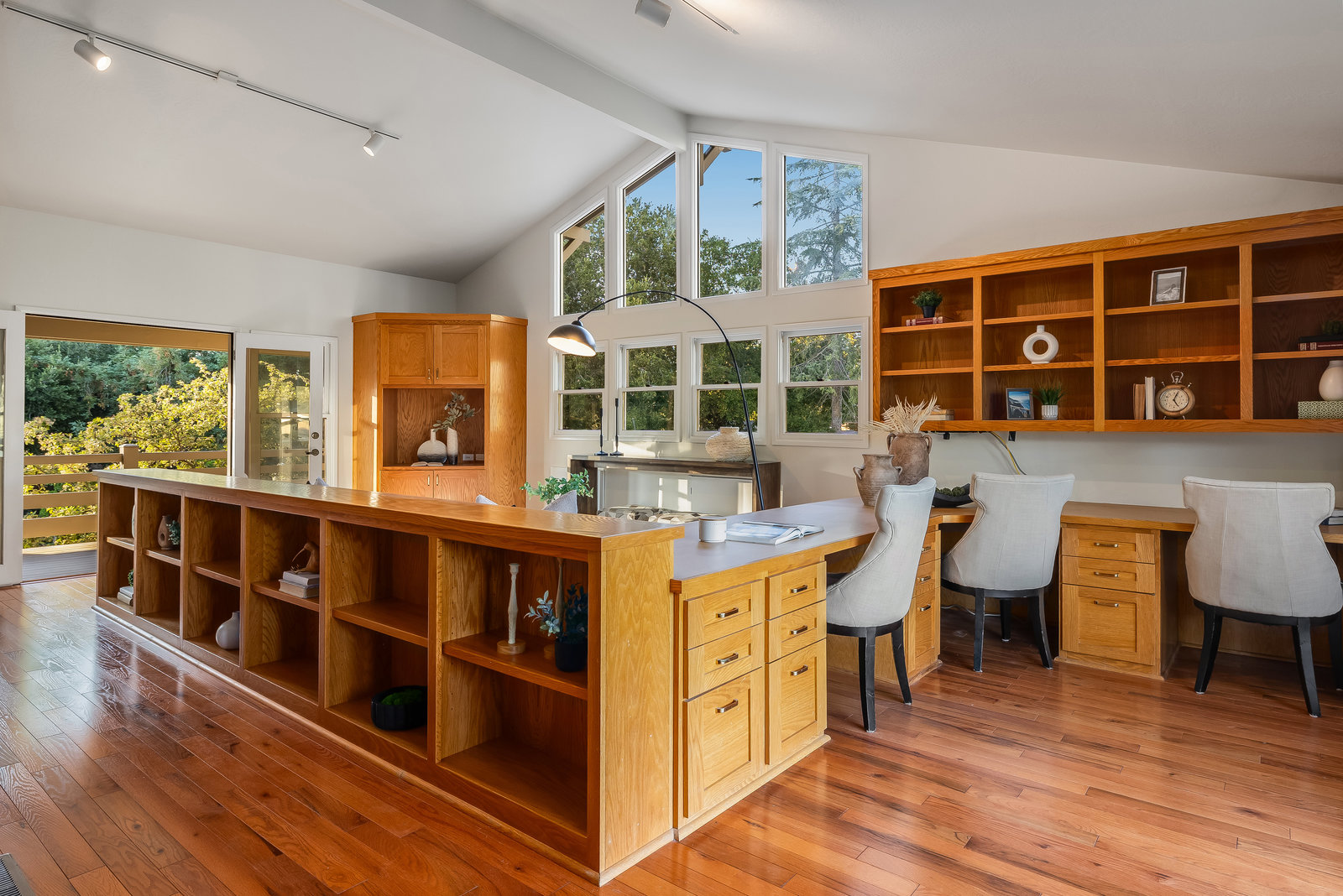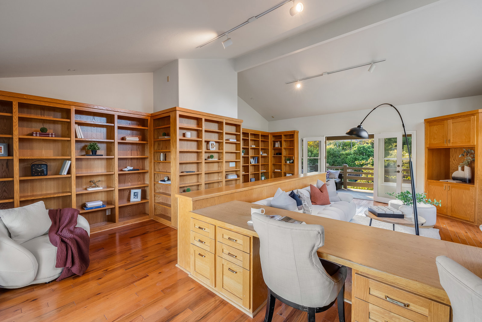 - Two Home Offices – The upstairs office, the largest room in the home, is plumbed and ready to become a second primary suite, while a downstairs office is tucked behind custom stained-glass sliding doors.
