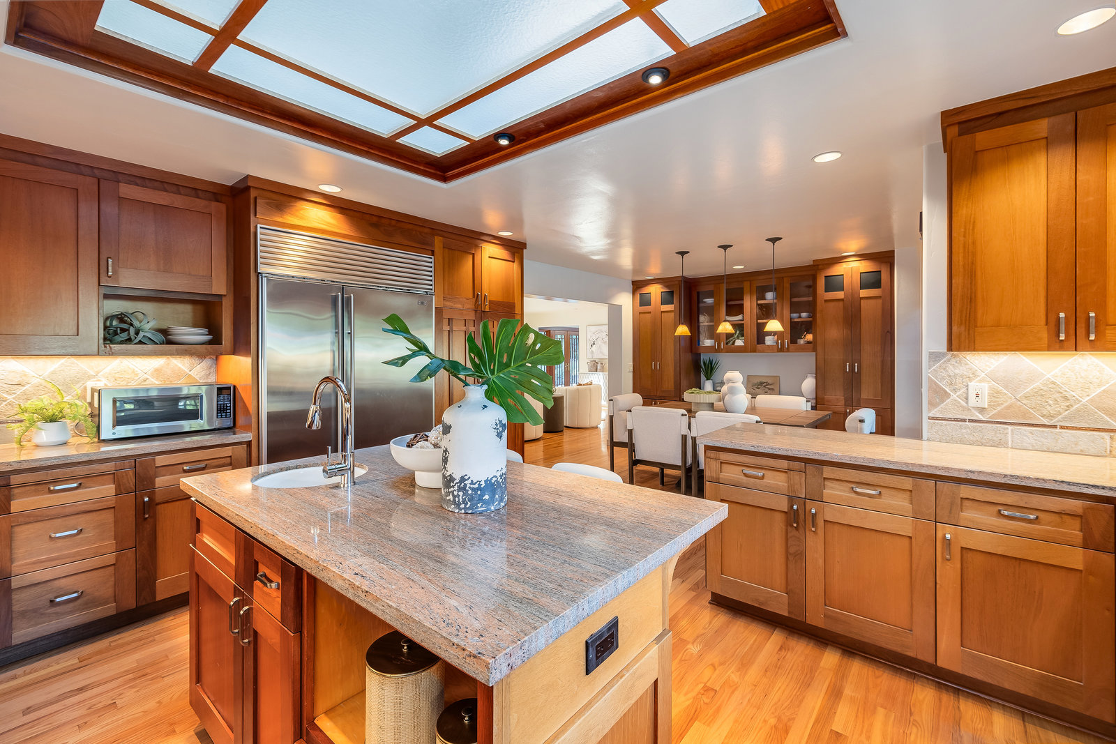 - Chef’s Kitchen – Outfitted with top-of-the-line stainless steel appliances, granite counters, and a central island, seamlessly flowing to the breakfast area and family spaces.