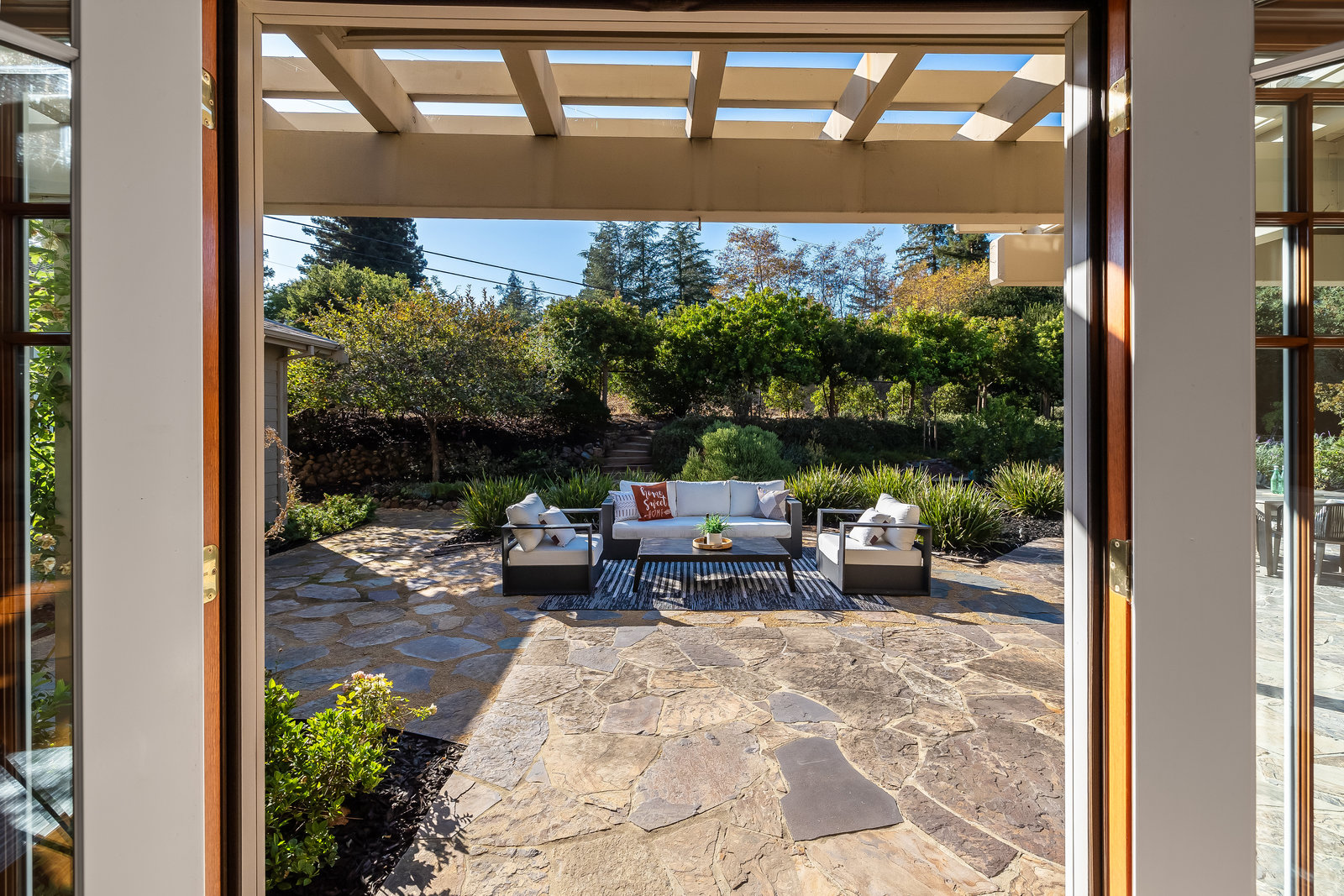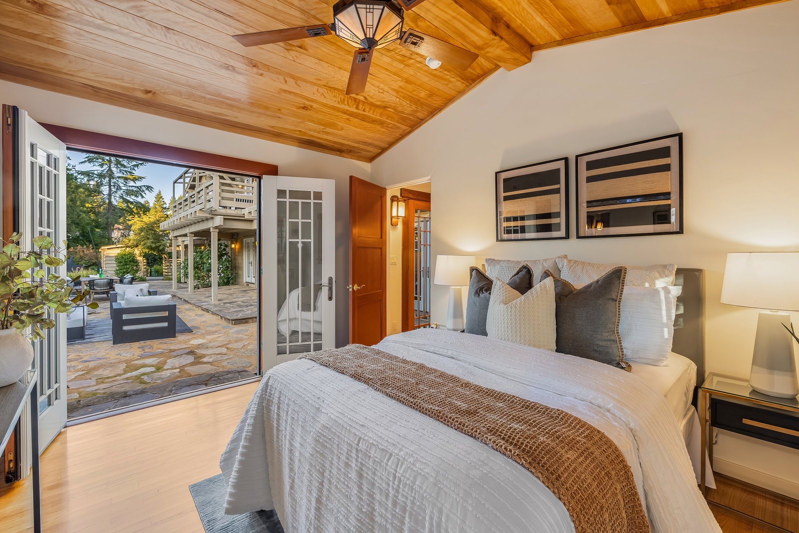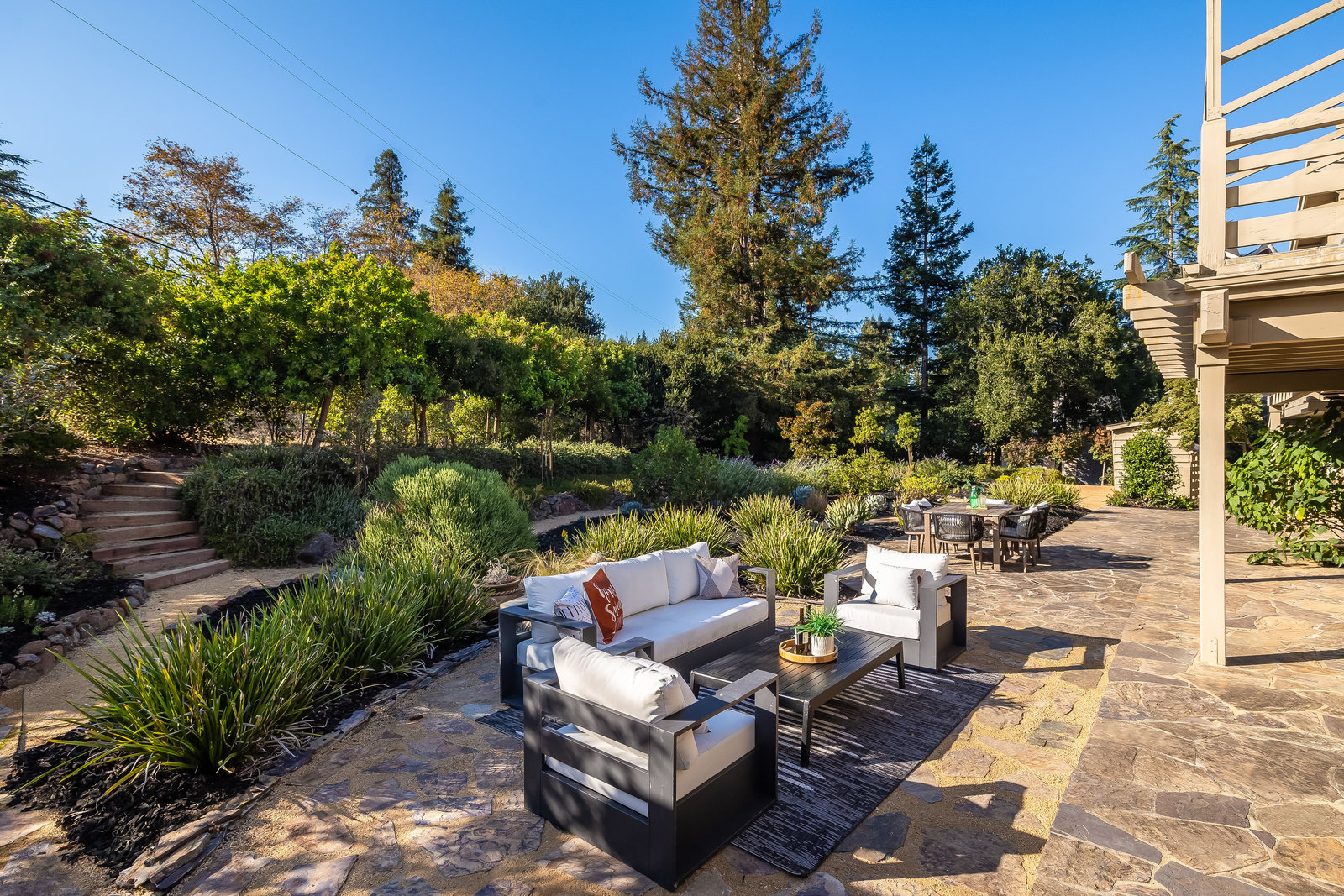 The estate grounds are a masterpiece of newly completed, drought-tolerant landscaping, featuring imported Sierra boulders, mature Redwood trees, succulents, Mexican sage, and meandering stone pathways. A custom-designed swale not only enhances the landscape but provides functionality, directing winter rains with ease. Architectural plans are available for a future ADU with its own private driveway, offering endless flexibility.